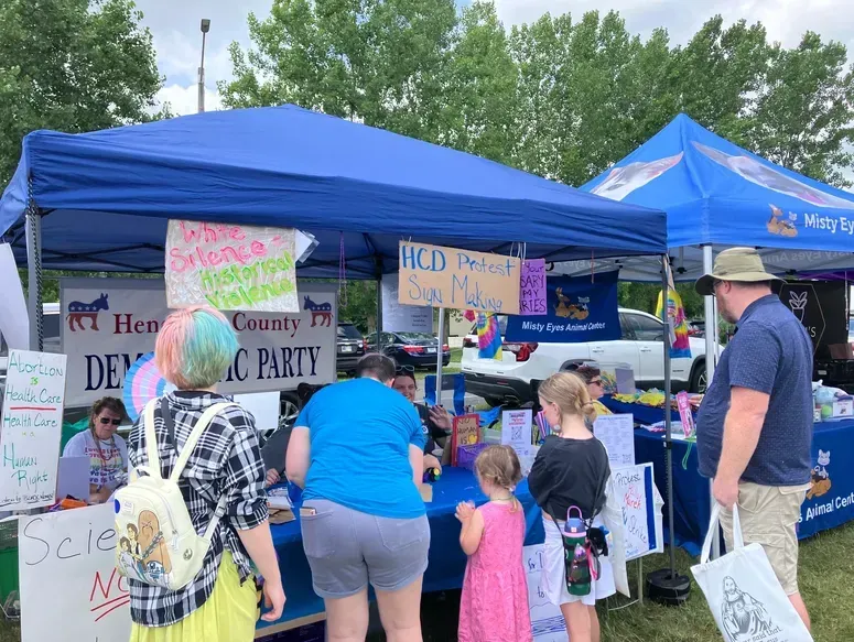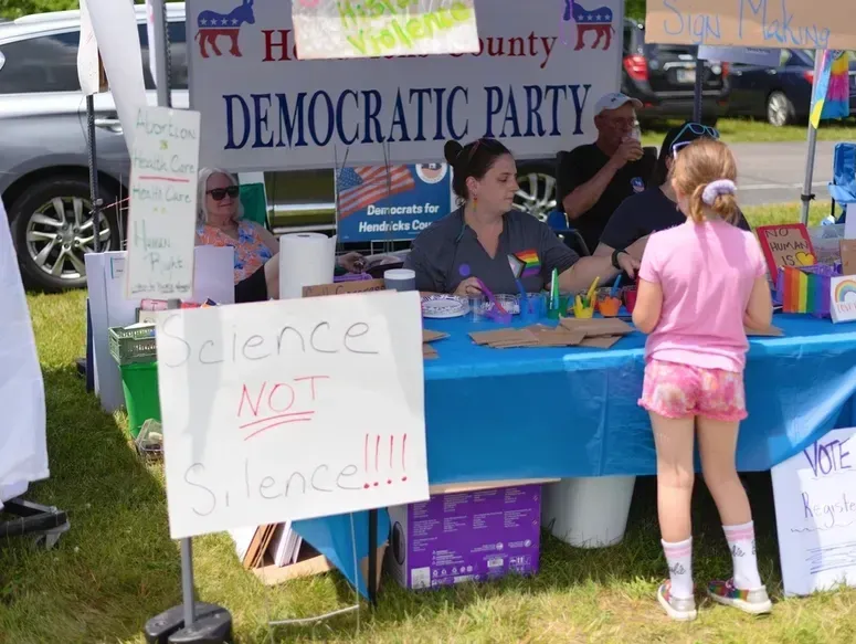 The Hendricks Co Dems had a booth, and we had supplies to make protest signs. We had so many people and kids make signs. It was a great event as usual, to enjoy a fun day and show your support for our LGBTQ+ friends.